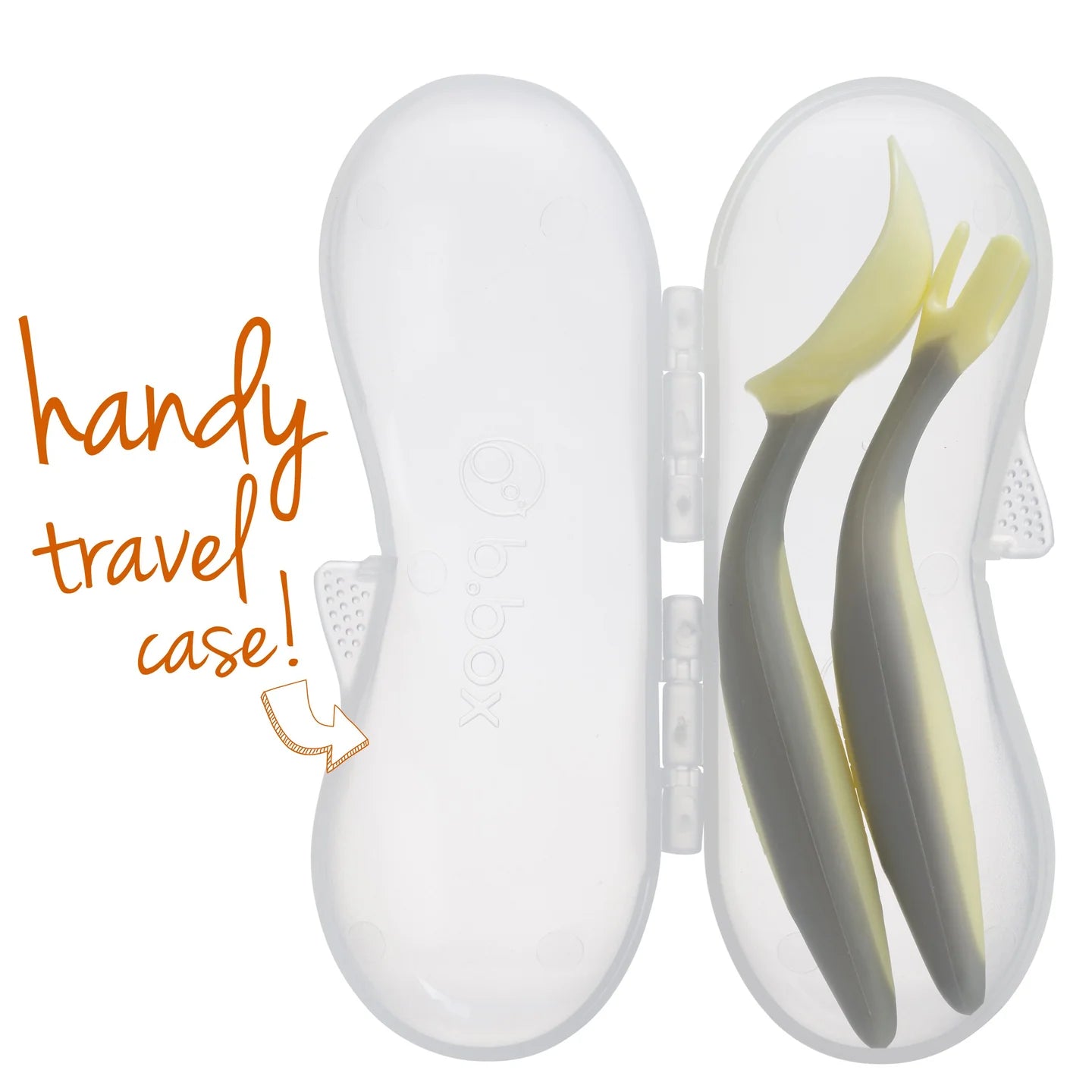 The unique flork has been designed to fit the size and shapes of little mouths. Its curved blunt prongs are gentler (and safer) on little mouths and gums. Set comes complete with a handy travel case to keep utensils clean before mealtime on the go, and after to prevent soiling in nappy bags or hand bag.